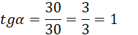 Wiedząc, że a=30=wysokość budynku, b=30=długość cienia oblicz miarę kąta