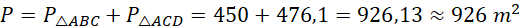 Zsumuj pola obu trójkątów, by obliczyć pole powierzchni działki: