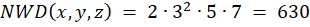 Przy czynniku 2 pojawiają się wykładniki 3, 2, 1, a więc wybieramy najmniejszy, tzn. 1 i przepisujemy