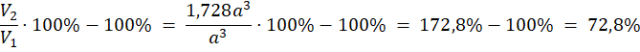 Oblicz objętość mniejszego sześcianu (V1). Następnie wyznacz wartość nowej, dłuższej krawędzi sześcianu i oblicz jego objętość (V2). Oblicz stosunek V2 do V1 i odejmij 100% od wyniku.