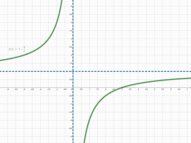 Naszkicowanie wykresu poprzez podstawienie wielu punktów lub poprzez punkty charakterystyczne i asymptoty x = 0 i y=1. Reszta własności określona jest na mocy naszkicowanego wykresu.
