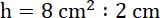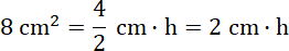 Zanim wykonasz jakiekolwiek działania, musisz zapisać podane wartości za pomocą pasujących do siebie jednostek, najwygodniej będzie zamienić długości na cm. Pamiętaj, pole trapezu to połowa iloczynu wysokości i sumy długości podstaw. Zapisz po jednej stronie znaku równości, jego powierzchnię, a po drugiej – wzór na pole uzupełniony o podane w treści wartości. Nie znamy wartości czynnika h, a więc musimy podzielić obie strony równania przez 2 cm, które znajduje się po stronie niewiadomej.