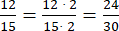 W pierwszym sposobie musisz rozszerzyć tak oba ułamki, aby w liczniku była ta sama liczba. A w drugim musisz podzielić licznik i mianownik tak, aby uzyskać odpowiedni wspólny licznik.