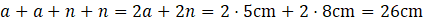 Napisz wyrażenie algebraiczne, przedstawiające obwód czworokąta oraz oblicz jego wartość podstawiając podane dane liczbowe: