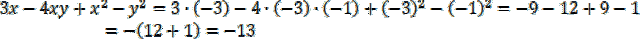 Wstaw podane wartości w miejsca x i y w wyrażeniu i oblicz jego wartość. Wynikiem podniesienia liczby ujemnej do parzystej potęgi jest liczba dodatnia. Mnożenie liczb ujemnych daje w wyniku liczbę dodatnią, gdy ilość liczb ujemnych jest parzysta oraz ujemną, gdy ilość liczb ujemnych jest nieparzysta.