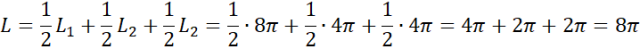 Na koniec odejmij od siebie odpowiednie połowy kół i dodaj wszystkie części obwodu figury.