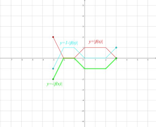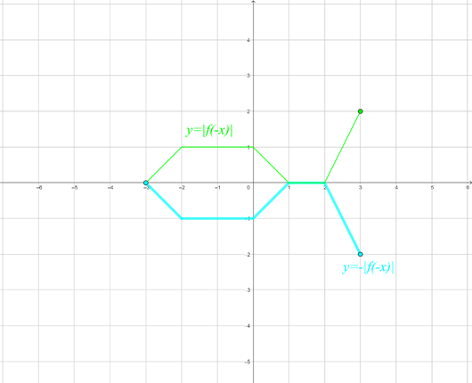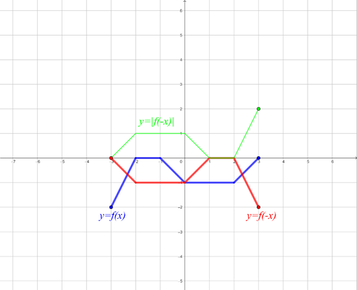 musisz najpierw odbić wykres funkcji f względem osi y, następnie odbić część wykresu powstałej funkcji, znajdującą się pod osią x, symetrycznie względem osi x, a potem odbić symetrycznie względem osi x całą powstałą funkcję.