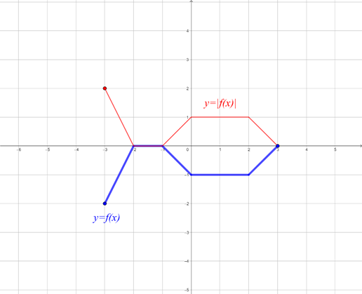 musisz najpierw odbić część wykresu funkcji f, znajdującą się pod osią x, symetrycznie względem osi x, następnie odbić całą powstałą funkcję symetrycznie względem osi x oraz przesunąć wykres powstałej funkcji o wektor