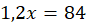 Oznacz szukaną liczbę jako x. Jeśli powiększymy liczbę o 20% to stanowi ona 120% pierwotnej wartości. Przyrównaj 1,2x do 84 i rozwiąż otrzymane równanie: