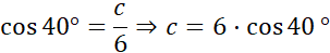 Cosinusem kąta α nazywamy stosunek długości przyprostokątnej leżącej przy kącie α do długości przeciwprostokątnej. Wyznacz długość c.