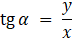 Dla kąta α, którego ramię końcowe wyznaczone jest przez punkt P(x,y), funkcję tangens definiuje się jako: