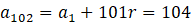 W tym zadaniu musisz obliczyć różnicę oraz a1 ciągu arytmetycznego, jeśli a100 = 100 i a102 = 104.