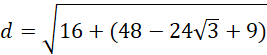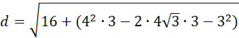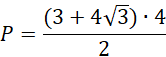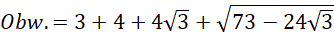 Aby wyznaczyć długość podstawy dolnej trapezu należy wykorzystać trójkąt 90°, 60°,30° . Dzięki temu możemy wykorzystać wzór na wysokość takiego trójkąta i równocześnie podstawy naszego trapezu zgodnie ze wzorem.