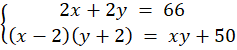 W tym zadaniu musisz ułożyć układ równań, aby przedstawiał on informację, że suma wszystkich boków prostokąta wynosi 66cm. Ponadto uwzględnij, że jeśli dłuższy bok prostokąta skrócimy o 2 cm, a krótszy wydłużymy o 2 cm, to pole prostokąta zwiększy się o 50cm2.
