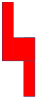 Podziel figurę na prostokąt o wymiarach 5 cm x 1 cm, kwadrat 2 cm x 2 cm i prostokąt 1 cm x 3 cm, by móc policzyć pola figur poprzez pomnożenie długości przez szerokość każdej z nich. Następnie należy dodać trzy otrzymane pola do siebie, żeby obliczyć pole całej figury.