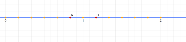 Liczby leżą na osi liczbowej w równych odległościach. Jeśli różnice dwóch par liczb są takie same, to ich odległości na osi liczbowej również są takie same. Aby zaznaczyć ułamki na osi, podziel odcinki pomiędzy liczbami całkowitymi na tyle równych części, ile równy jest mianownik. Jeśli liczba jest samym ułamkiem zwykłym, to zaznacz ją po prawej od zera po tylu odcinkach, ile równy jest licznik. Jeśli natomiast liczba jest liczbą mieszaną, to zaznacz ją po prawej od takiej liczby, ile równa jest część całkowita tej liczby po tylu odcinkach, ile równy jest licznik.
