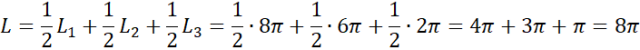 Na koniec odejmij od siebie odpowiednie połowy kół i dodaj wszystkie części obwodu figury.