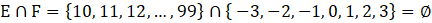 . W tym przypadku zbiory E i F nie mają elementów wspólnych, ponieważ elementami zbioru E są liczby od 10 do 99 włącznie, a elementami zbioru F są liczby