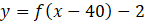 przesunięty o 40 jednostek w prawo i 2 jednostki w dół. Zauważ również, że gdy przesuniemy wykres funkcji
