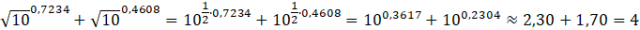 Skorzystaj z tablic logarytmów i oblicz sumę.