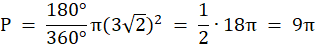 W tym zadaniu oblicz pole zacieniowanego obszaru i długość zaznaczonego łuku.
