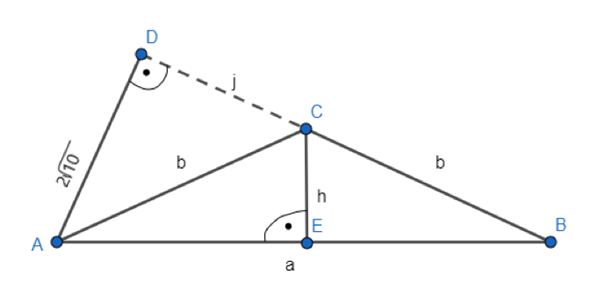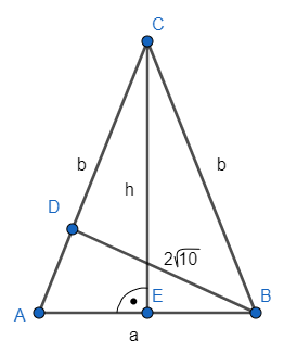 Skorzystaj z twierdzenia Pitagorasa w trójkącie CDB i oblicz długość |CD|. Następnie oblicz długość AD i skorzystaj z twierdzenia Pitagorasa w trójkącie ADB, aby znaleźć długość a. Na koniec skorzystaj ze wzoru na pole trójkąta i oblicz h.