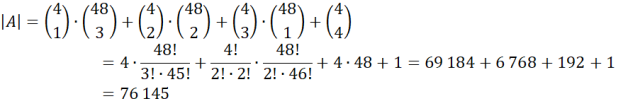 Wyznacz prawdopodobieństwo wylosowania co najmniej jednej damy, jeśli z talii 52 kar losujemy bez zwracania cztery karty.