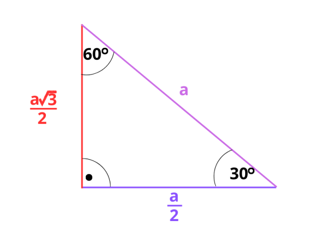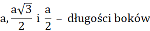 W trójkącie prostokątnym o kątach 30°,60°, 90° długości boków są następujące: