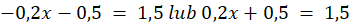 Jeśli wartość bezwzględna z liczby była równa 1,5, to liczba ta jest równa 1,5 lub ta liczba ze zmienionym znakiem jest równa 1,5. Rozpatrz oba przypadki i rozwiąż odpowiednie równania.