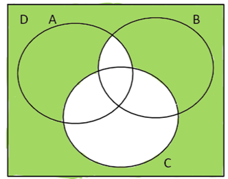Na początku należy określić przecięcie zbiorów A i B, następnie należy znaleźć sumę tego zbioru ze zbiorem C. Następnie należy znaleźć różnice zbioru D z nowopowstałym zbiorem i zaznaczyć na diagramie.