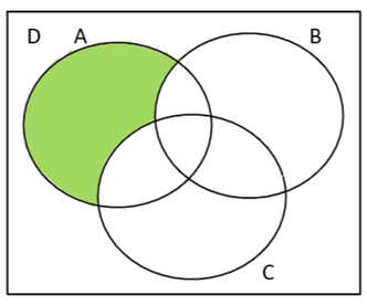 Na początku należy określić sumę zbiorów A i B, następnie należy znaleźć różnicę zbioru D i B. Następnie należy przecięcie tego zbioru ze zbiorem D \ B i zaznaczyć na diagramie.
