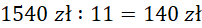 Wiedząc, że pralka kosztuje 1400 zł i kupując ją w 11 równych ratach, zapłacisz o 10% więcej niż wynosi wyjściowa cena pralki, oblicz wysokość raty.