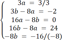 3ax4 + (3b–8a)x3 + (16a–8b)x2 + (16b–8a)x–8b = 3x4–2x3 + 24x–16