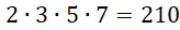 Dzielniki liczby 210: 1, 2, 3, 5, 7,