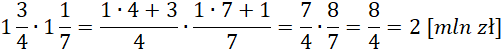 Pomnóż dochód firmy w pierwszym roku przez współczynnik wzrostu dochodu. Zamień liczby mieszane na ułamki, a następnie skróć ułamki.