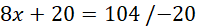 Ułóż równanie na podstawie treści zadania. Oznacz ilość pieniędzy, którą dokładał Krzyś do skarbonki jako niewiadomą x. Dokładał je przez 8 tygodni, co tydzień tyle samo, więc pomnóż x przez 8. Dodaj do tego 20, czyli ilość pieniędzy, która była na początku w skarbonce i przyrównaj całe wyrażenie do całkowitej ilości pieniędzy, która była w skarbonce po 8 tygodniach. Rozwiąż takie równanie.