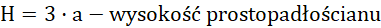 Objętość bryły obliczasz, mnożąc powierzchnię pola podstawy bryły razy jej wysokość. Podstawą bryły jest kwadrat o boku długości a. Wysokość graniastosłupa jest 3 razy większa od długości podstawy kwadratu, dlatego zapisujesz ją jako