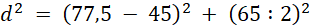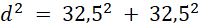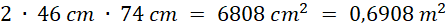 Dłuższy bok budy ma długość 74 cm. Obliczmy długość krótszego z twierdzenia Pitagorasa.