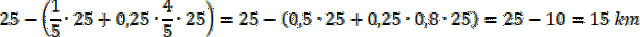 Od całej trasy odejmij sumę powyższych wyrażeń (kilometry, które zostały już pokonane):