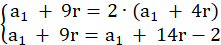 W tym zadaniu musisz znaleźć pierwszego wyrazu ciągu oraz jego różnicy na podstawie informacji, że wyraz dziesiąty jest liczbą 2 razy większą niż wyraz piaty i zarazem liczbą o 2 mniejszą od wyrazu piętnastego.