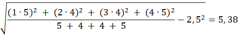 Oblicz średnią arytmetyczną oraz odchylenie standardowe za pomocą wzoru: