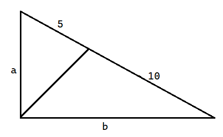 Zapisz równanie wynikające z twierdzenia o podziale boku przez dwusieczną kąta wewnętrznego w trójkącie. Wyznacz z niego zmienną b w zależności od a. Zapisz twierdzenie Pitagorasa, a następnie podstaw za b wyznaczoną wartość. Otrzymasz w ten sposób równanie, z którego możesz wyznaczyć wartość a, a następnie wartość b.