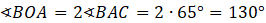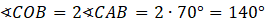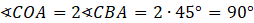 Kąt COA jest kątem środkowym opartym na tym samym łuku co CBA, więc jego miara jest dwukrotnie od niego większa.
