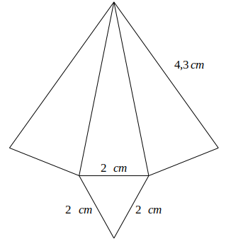 Narysuj siatkę ostrosłupa o podstawie trójkąta foremnego o boku 4 cm i krawędziach bocznych długości 8,6 cm w skali 1: 2.