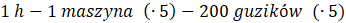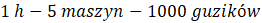 Oblicz ile guzików wyprodukuję 5 maszyn w ciągu 1 godziny.