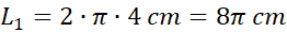 Koniec wskazówki podczas obrotu zakreśli okrąg o promieniu równym długości wskazówki. Oblicz długości tych okręgów dla obu wskazówek korzystając ze wzoru