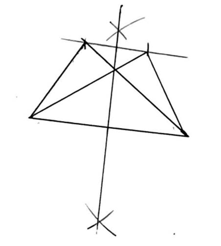 Narysuj dowolny trójkąt. Wyznacz symetralną krótszego ramienia – w ten sposób znajdziesz środek boku.