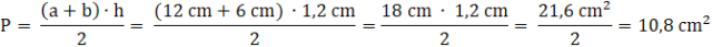 Po policzeniu wszystkich wymiarów trapezu i podstawieniu do wzoru pole trapezu wynosi 10,8 dm2.