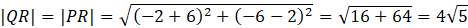 Wyznacz obwód trójkąta równoramiennego PQR, który jest wpisany w okrąg o równaniu