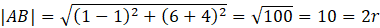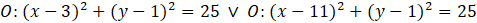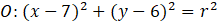 Podaj równanie opisujące okrąg, który jest stycznych do prostych o równaniach y + 4 = 0 i y – 6 = 0. Ponadto zawiera ona punkt P(7, 4).
